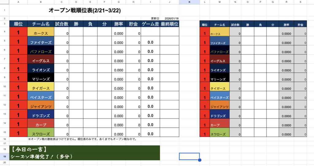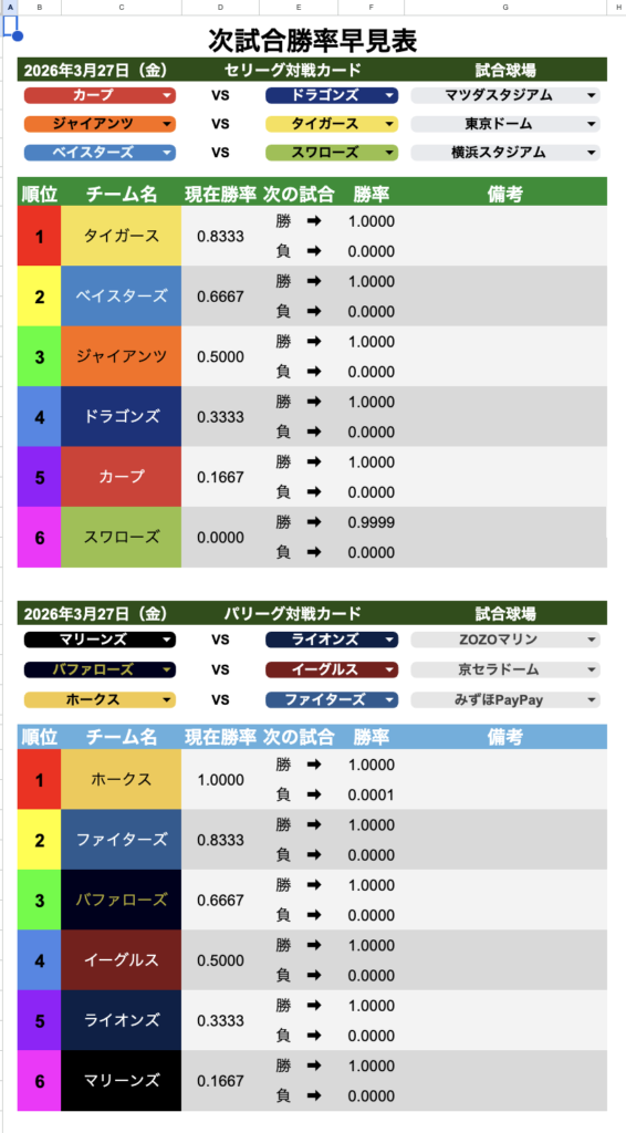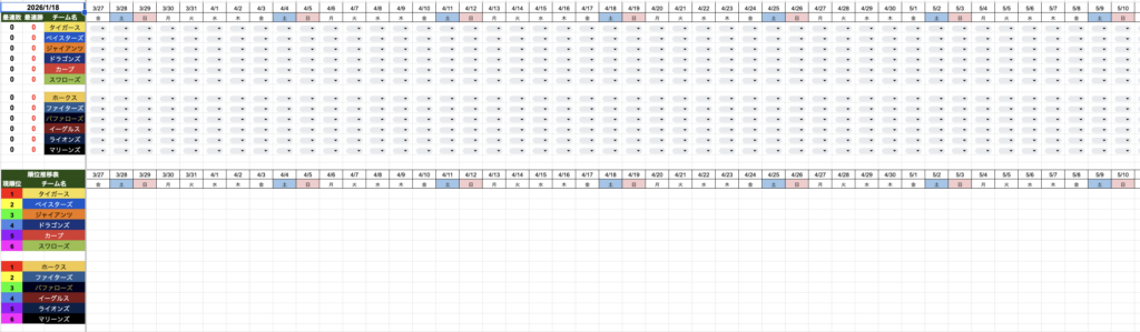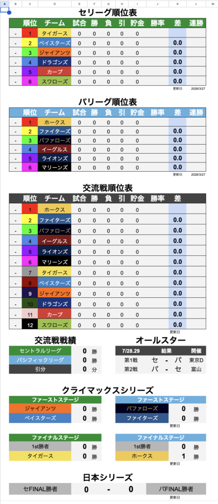 あとは交流戦のページとポストシーズン(CS〜日本シリーズ)まで、準備が整いました。